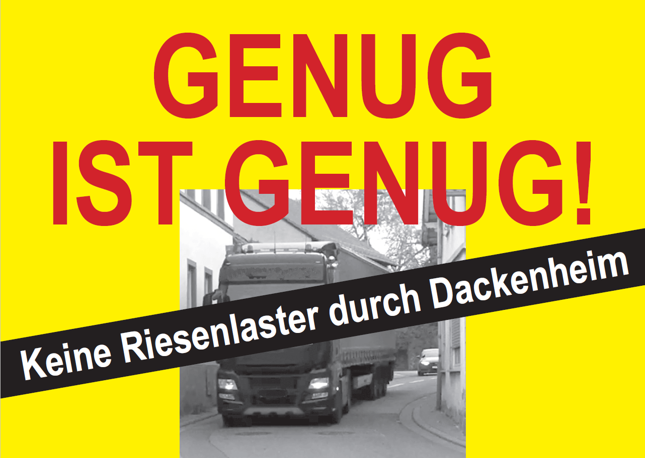 Wir wollen keine weitere Gefährdung durch eine Vervielfachung des LKW Verkehrs durch Dackenheim!